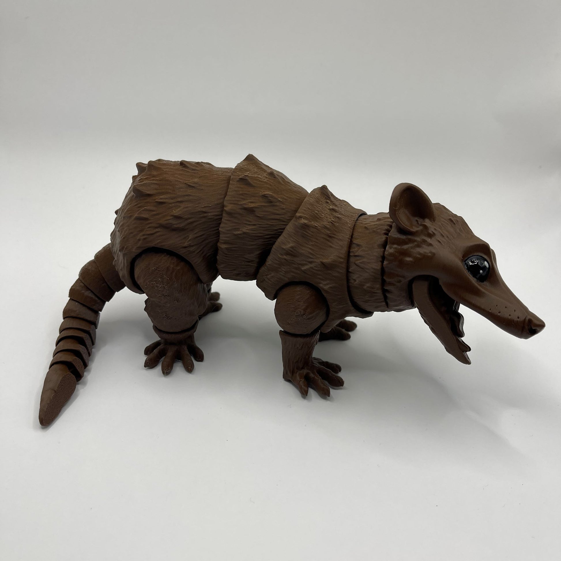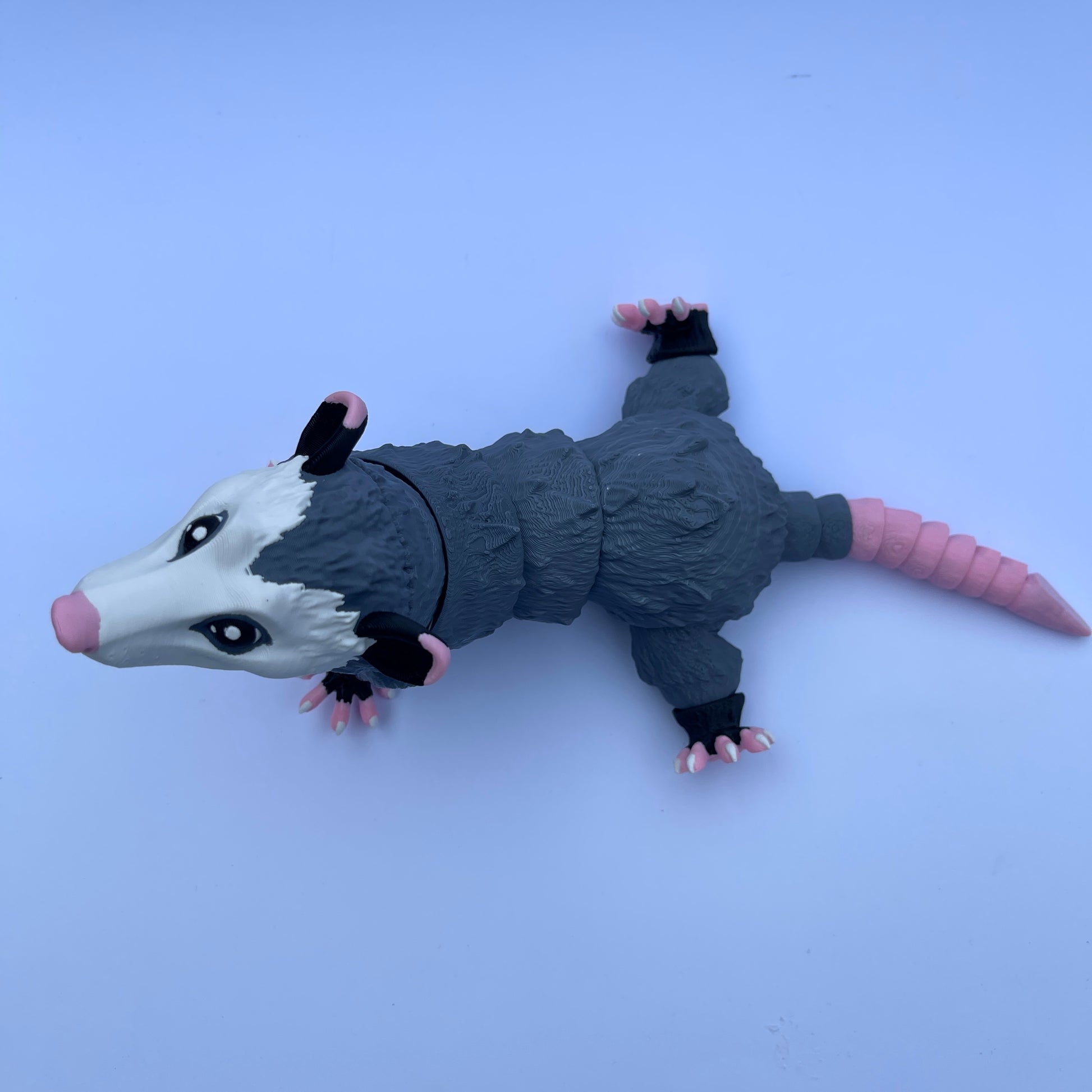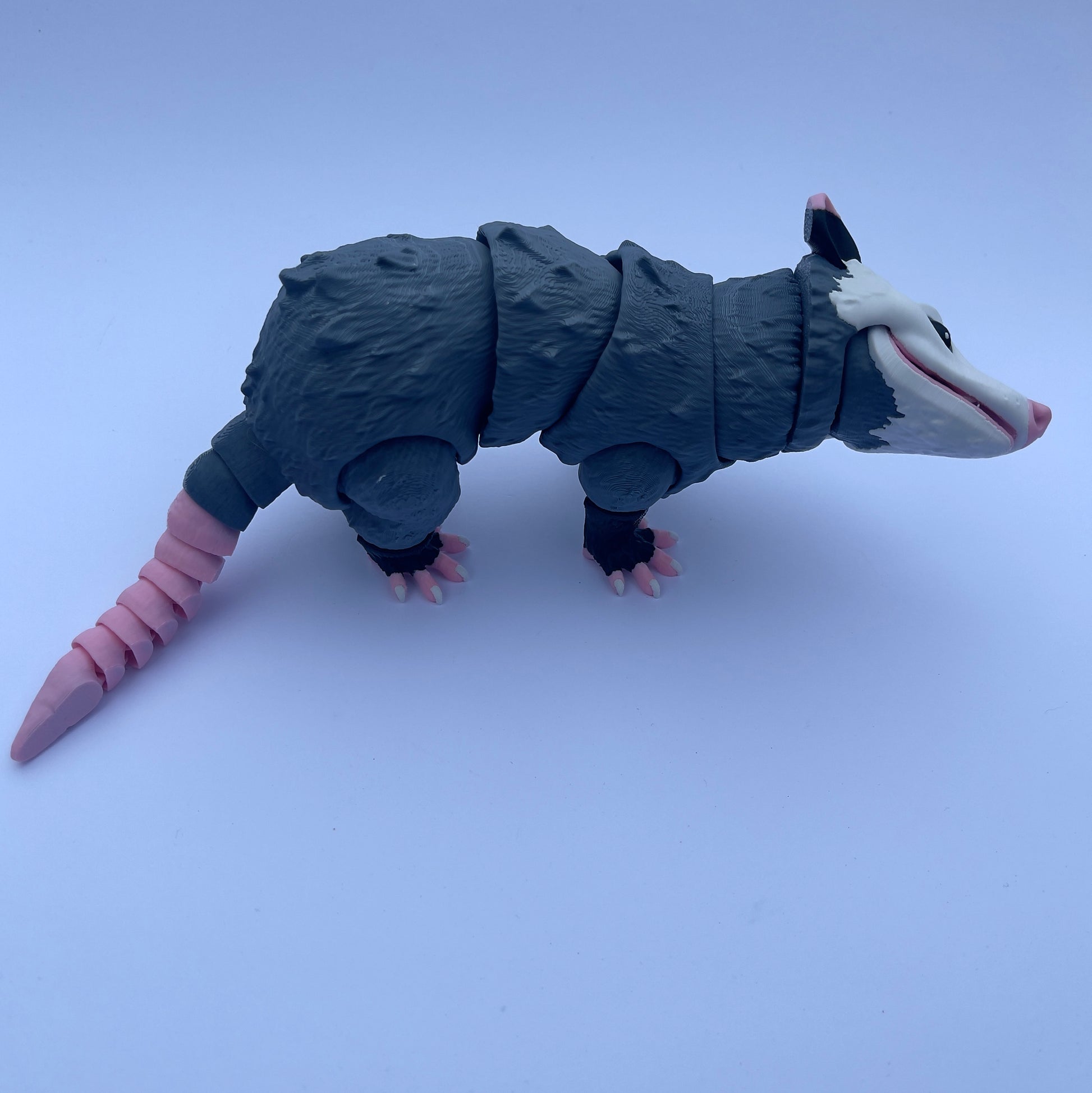 What makes these 3d printed opossums truly unique is their complete articulation, enabling you to effortlessly maneuver their gorgeous body and tail, posing them in any delightful manner that captures your imagination. Even their mouths can open and close, as they have a hinged jaw.