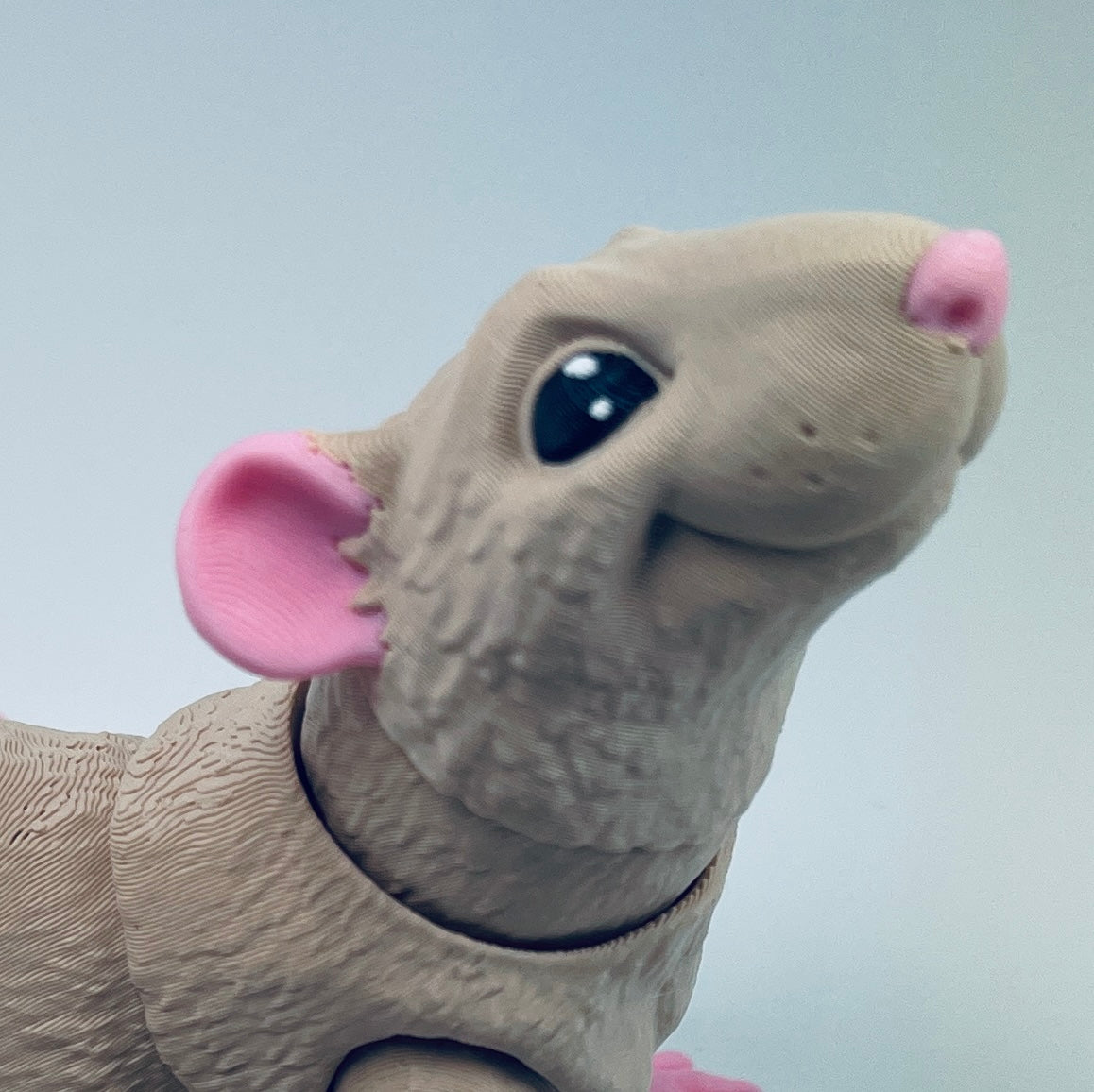 Capture the essence of your love for rodents with our 3D-printed, articulated rat! Using top-notch 3D printing technology, our rat is crafted to mimic the movements and poses of its real-life counterpart. Its exquisite details and lifelike actions make it a must-have for any collection or a one-of-a-kind present for any rodent fanatic. Whether you're a fan of rats or simply appreciate the wonders of 3D printing, this articulated rat is bound to amaze.